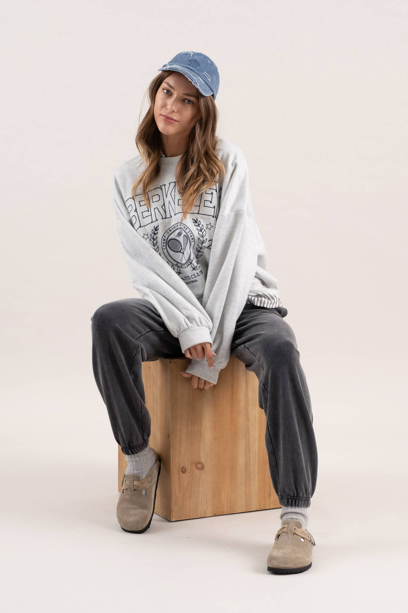 *crew sweatshirt only* does not include striped top*ROUND NECKLINE DROP SHOULDER LONG SLEEVES FITTED CUFF AND HEM EMBROIDERY DETAIL SOLID KNIT TOP SELF: 100%POLYESTER CONTRAST: 85%COTTON, 10%POLYESTER, 5%SPANDEX